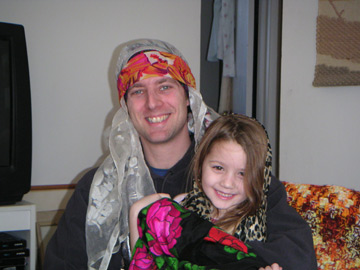 My beautiful niece, Liat, who has dressed me up in several different scarves. It was even worse than it looks. Laugh while you can; you’ll get yours.