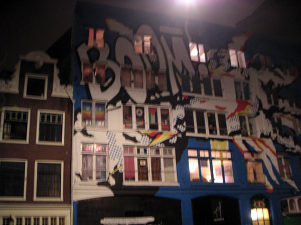 Last night, I walked around in the Leidseplein for a bit. Lots of bars, restaurants, shops, etc. Here’s a funny-looking building. I didn’t have my map with me, so I didn’t know how near or far I was from the Red Light district. I thought I might be close, because I saw numerous women who were absolutely phenomenally/pneumatically built, dressed in some of the most sex-oriented clothing I’d ever seen in public. When I looked at the map this morning, I realized I was nowhere near that section of town, and that some women in Amsterdam just dress like that.