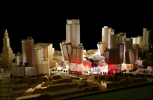 Okay, I've goofed on Frank Gehry before, with his "Ooh! Look at me! I'm using curved metal surfaces AGAIN!" But nothing really prepared me for his inane new design for Brooklyn, centering on Bruce Ratner's new NBA arena for the Nets (guess what? It uses curved metal surfaces!) Yes, as you can see below, by 2011, Brooklyn will look like the set of Tim Burton movie. Congratulations. Glad the NYTimes likes it. (Probably doesn't have anything to do with the fact that real estate developer Ratner is the Times' partner on their new building.) ![]() Gehry's also a bullshit furniture designer. 7.03.2005