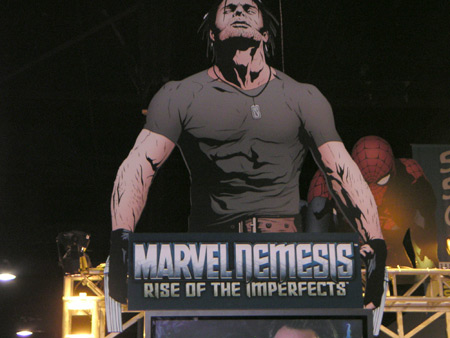 Had a fun day at the Con yesterday: spent WAY too much money on books and art, including a great sketch of Penny Century by Xaime Hernandez. This photo from the EA booth says it all: ![]() Anyway, not much time/motivation to write this morning, so I'm just posting links to my pix, with captions: Zander Cannon will probably not be happy to be captured for posterity thus, but he's a good guy and a real pussycat, so I'm not afraid of him coming out from Minneapolis to whup my ass. I laughed like a retard when I saw these guys. Gary Panter is a heck of a good guy, and a legendary cartoonist. I'll tellya my story of meeting the guy sometime. Mario Hernandez is "the third Hernandez Brother" and, by all accounts, the hippest. I never met him before this year, and he was awfully friendly and personable. I felt bad that I didn't have any comics for him to sign. I probably should have asked him to sign something really incongruous, like an old issue of Captain America that he had nothing to do with. I sure could use some coffee. Dr. Doom, contemplating that fine pimp cup. I wonder if he equips his robot army with spinners, too. Eddie Campbell, who never looks happy at these things. Recreating the Spider-Man/Mary Jane scene from the first movie, except he's not hanging upside-down. I don't have a picture of it, but the official VM fiancee spoke to Pete Bagge during his autograph session and asked him to sign his recent comic strip in Reason magazine, about the absurdity of medical marijuana persecution. Since everyone else was there with copies of Bagge's old Hate comic, I think he was kinda gratified to see someone show up with a piece of his libertarian cartooning. So far, out of 85,000 projected attendees & exhibitors, we've only met one other person who hasn't seen the new Star Wars flick. So that's three of us... 7.15.2005